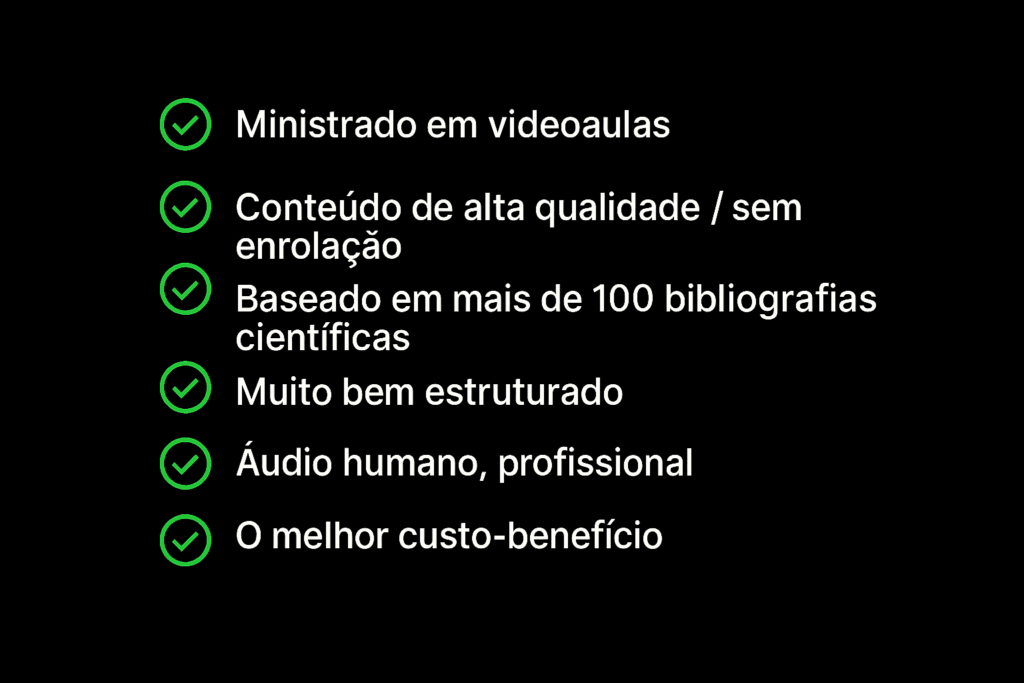 O curso oferece acesso vitalício, garantindo, inclusive, que você receba todas as atualizações de conteúdo sem custo adicional.